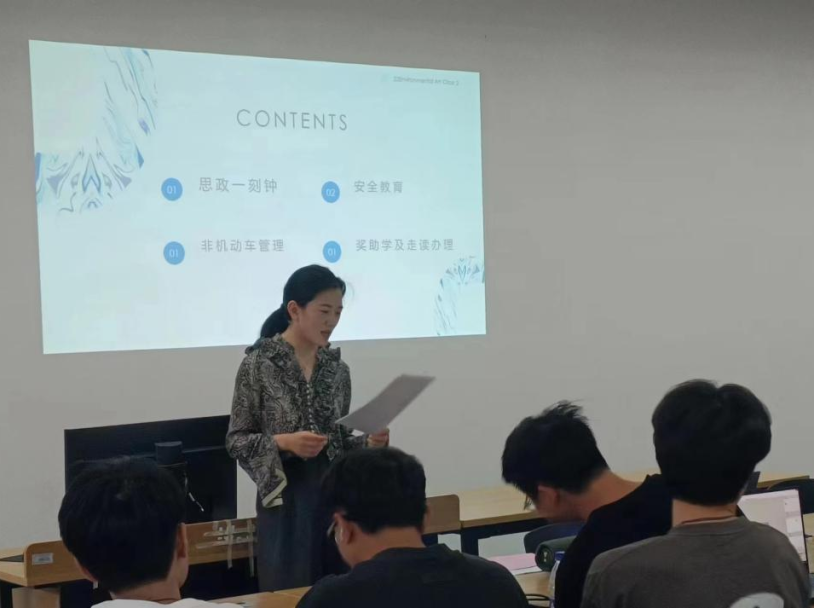班会上,班主任鼓励同学们要制定学习目标,做好职业生涯规划,明确人生目标,时刻保持目标意识,坚持追求卓越,勇于迎接挑战,不断学习和成长,走好重要的大学阶段。
