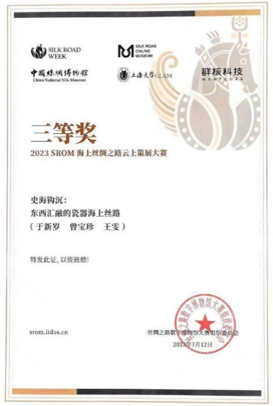 “SROM海上丝绸之路云上策展大赛”自5月启动以来,吸引了国内外50余所高校、10余家博物馆以及广大设计师群体的积极参与,超过200支队伍报名,参赛总人数达800人。晚会揭晓了大赛的获奖结果,包括特等奖1名,文博类和设计类一等奖各1名,二等奖各2名,三等奖各3名,文博类和设计类优胜奖共15名,现场的领导与专家为选手颁奖。