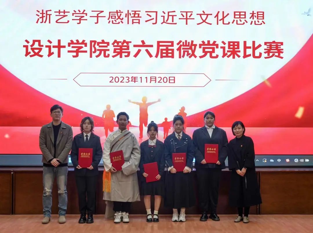 为深入学习贯彻习近平文化思想,持续推进新时代文化建设,进一步增强设计学院学生党组织建设,扎实推进理论学习,引导广大青年学生筑牢思想之基、补足精神之钙、把稳思想之舵,自觉做习近平新时代中国特色社会主义思想的坚定信仰者和忠实实践者,11月20日,设计学院开展“浙艺学子感悟习近平文化思想”第六届微党课比赛。基础教学部(公共体育部)党总支副书记、副主任顾才铭,马克思主义学院副院长胡卓群,设计学院党总支书记汪琳,院长李昌国,党总支副书记汪仕龙,副院长何佳玮,党总支委员、教工第二党支部书记贾娜娜,学生党支部书记龚林峰出席并担任评委。辅导员、学生党员、第42期党校学员、 “正青春”青年理论学习小组成员、青年团员现场观摩学习。