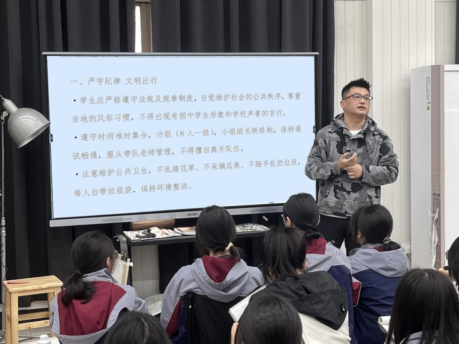 在出发前,设计学院组织召开写生采风行前教育动员会,带队教师对外出写生采风的行程安排进行了说明,对外出安全纪律、管理规定等内容进行特别强调,同时也要完成好老师布置的作业要求。