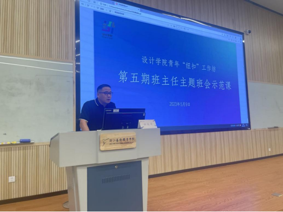为进一步贯彻落实立德树人根本任务,强化班主任队伍建设,优化班级管理效能,5月9日,设计学院青年“纽扣”工作坊第五期班主任主题班会示范课在阶梯一举行。设计学院党总支专职副书记顾才铭、全体班主任、辅导员以及21环境艺术设计班全体学生参加。