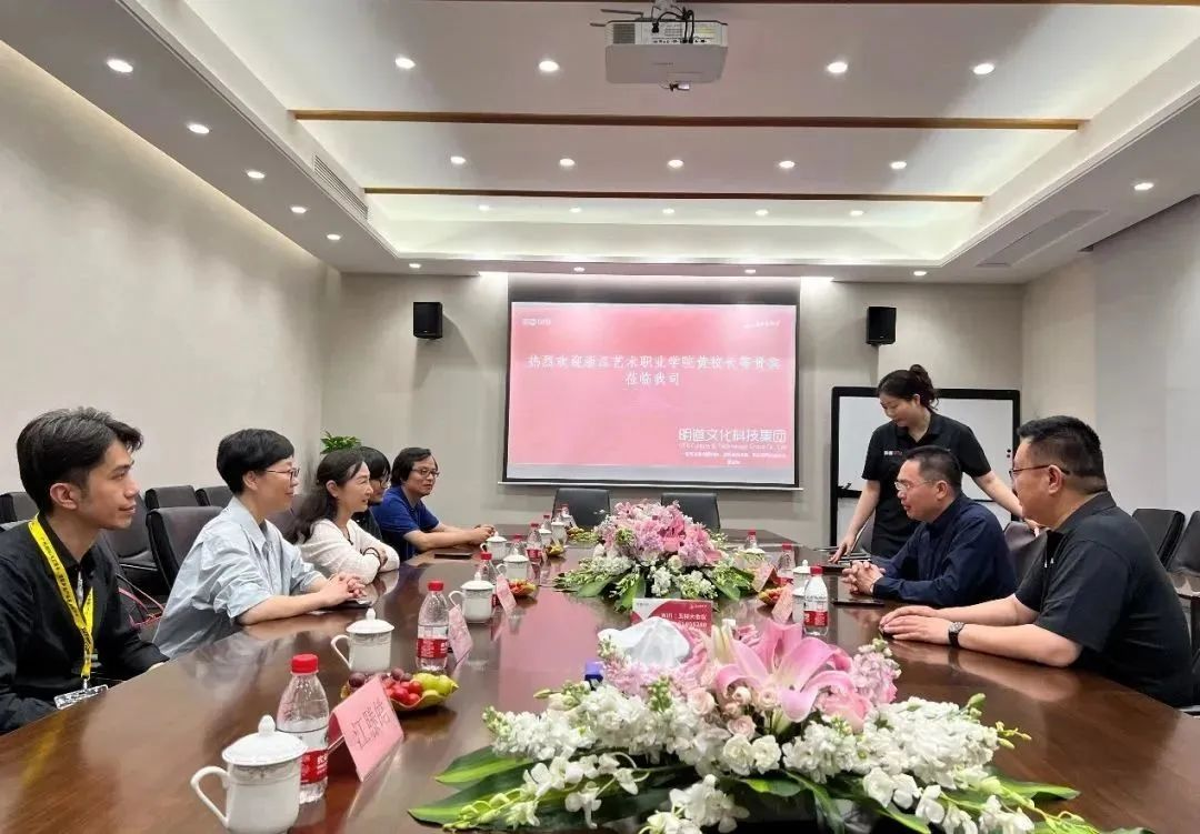 广州市明道文化科技集团股份有限公司由广州市明道文化产业发展有限公司、广州市明道灯光科技有限公司、广州市明道舞台科技有限公司、广州市明道工程技术有限公司、珠海横琴华夏弘道投资中心等公司组成,是一家集文旅创意制作、演艺设备供应和集成项目实施及服务为一体的全案提供商,2018年入选文化娱乐领域唯一一家广州“未来独角兽”创新企业。5月8日,一行人来到广州市明道文化科技集团股份有限公司调研、参观、交流,并签订校企合作协议。