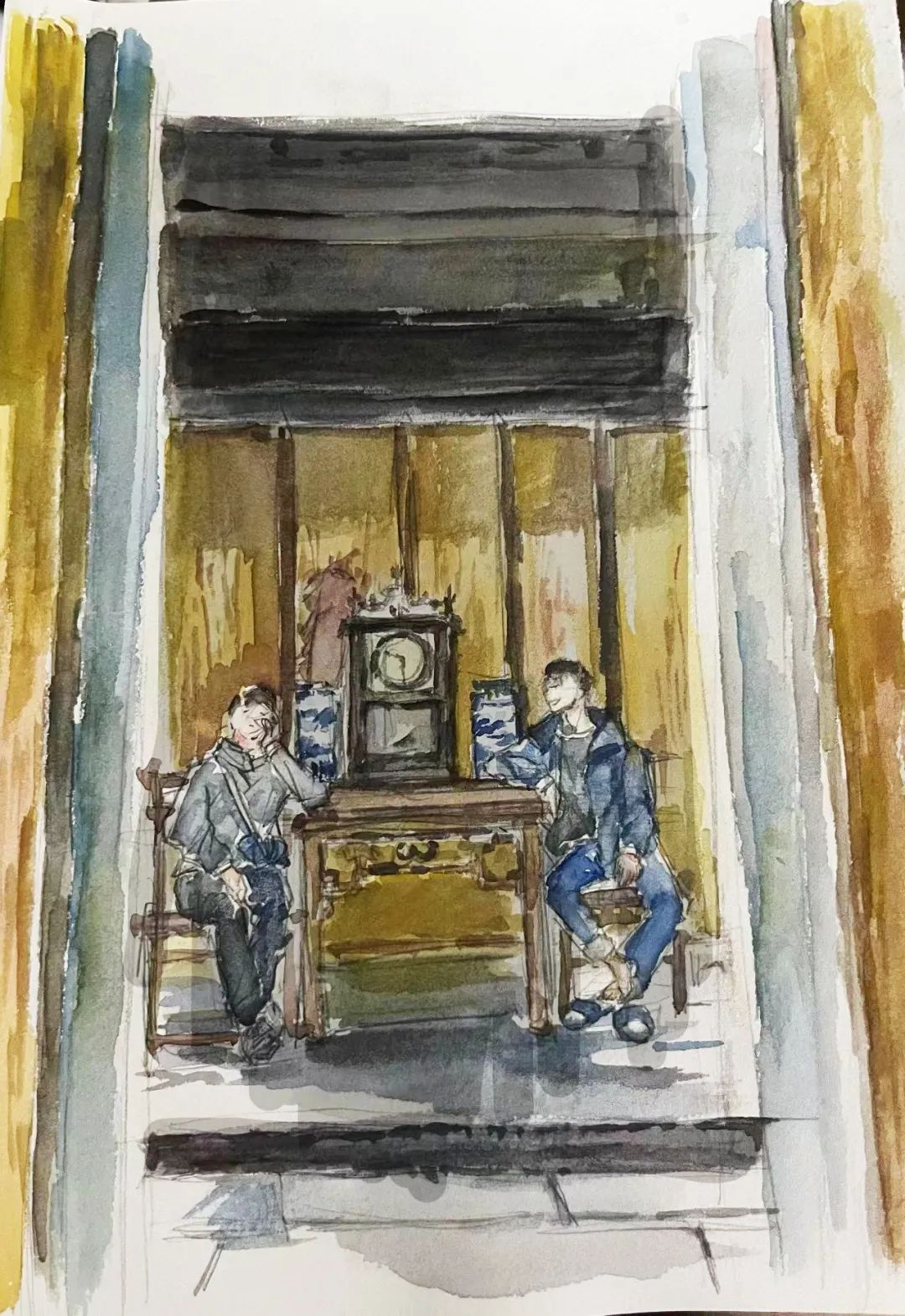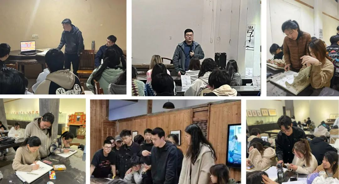 一行人前往学生采风现场,并认真观看了学生作品。汪琳勉励同学们要在短暂的写生采风实践中深入了解古城文化,切身感受古城魅力,通过细心观察,汲取灵感,努力创作出具有深厚内涵和蓬勃生机的优秀作品。