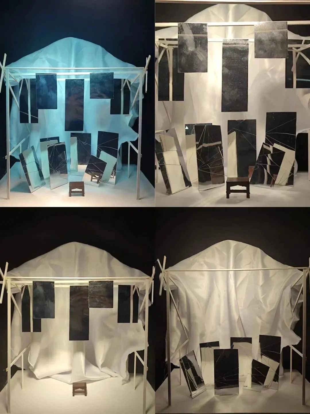 本次展览涵盖了舞台美术设计、灯光音响设计、舞台形象设计、舞台数字媒体创意设计四个模块的毕业设计作品以及舞台演出实践作品。这些作品,是同学们历经无数的否定与肯定、倦怠与鼓舞的结晶;也是他们关于设问与创想、求索与表达的初体验;更是他们用真诚和勇气对舞台艺术提交的一份答卷。让我们见证下一代舞美工作者对舞台艺术从芒芒昧昧到初窥门径的进步,或许稚嫩,但又何妨?