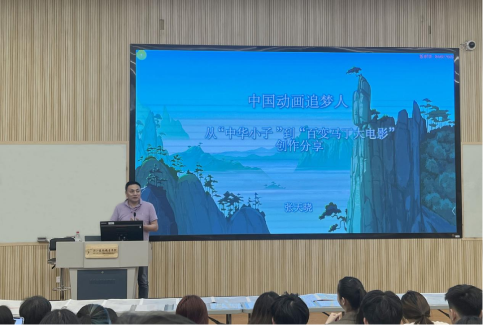 讲座上,张天晓介绍了他从事动画行业40年的宝贵心得,讲授了从创作“中国儿童动画”到“面向世界的动画”中的坚守和付出,勉励同学们要为创作梦想而长期坚持。在讲授《百变马丁》等动画IP形象打造时,他结合作品创作历程,讲解了造型能力等基本功在动画创作中的重要性,强调在当下三维技术高速发展的时代,也必须打牢扎实专业的基础。在制作本国动画时,我们应当寻找本土化表达,同时注意用国际视角讲述民族风格,用情讲好中国故事,向世界展现可信、可爱、可敬的中国形象。