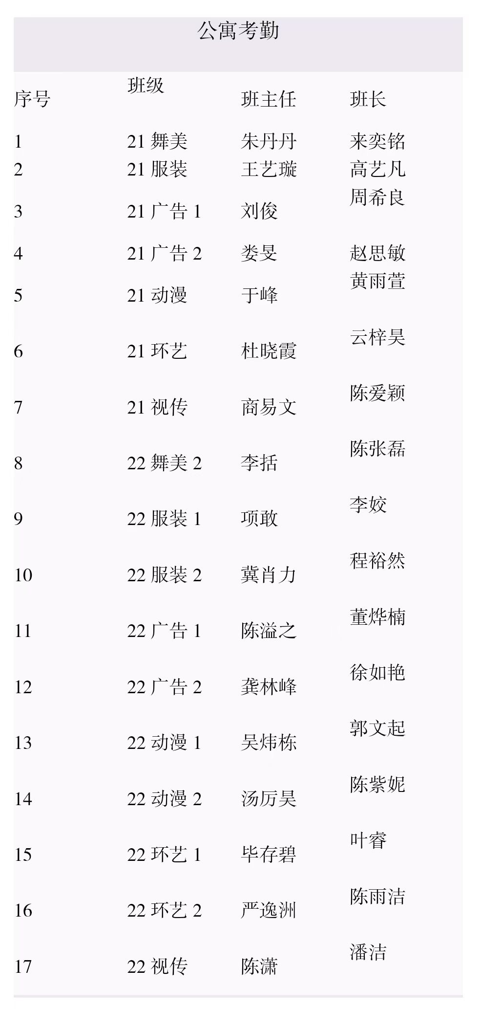 经过检查评比,本期推送4月、5月在课堂考勤、学风检查、公寓考勤、违规违纪检查中表现优异的班级,分别是: