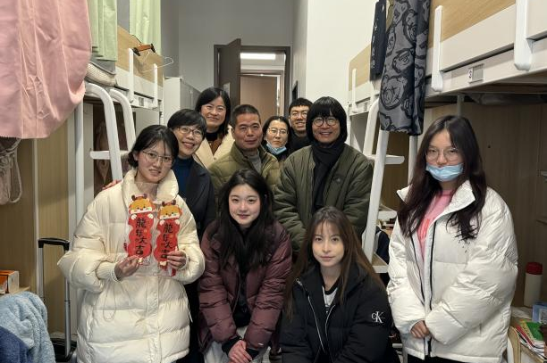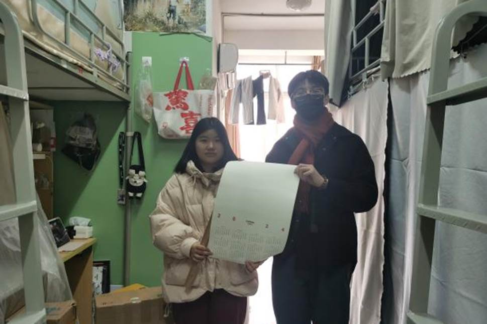 设计学院领导班子、全体班主任和辅导员走访学生寝室,细心查看宿舍环境,关注每一位学生的返校情况,询问学生的学习生活需求,为学生送上关怀。并叮嘱学生认真完成劳动教育,保持整洁干净的寝室卫生环境。老师们还精心准备了富含龙年元素的春联、挂件,写满了对学生的美好寄语,让浓浓的年味与深深的人文关怀交织在一起。
