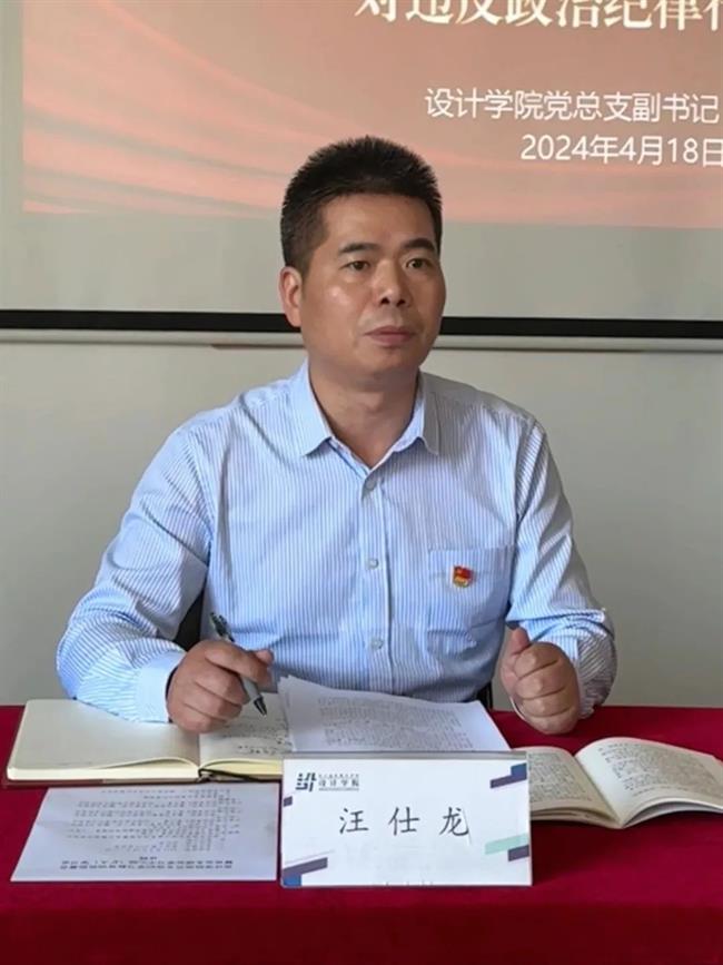 4月18日,设计学院党总支召开党纪学习教育动员部署会暨党总支理论中心组(扩大)学习会。学院领导班子出席会议,教研室主任和全体教师党员参加。会议由设计学院党总支副书记汪仕龙主持。