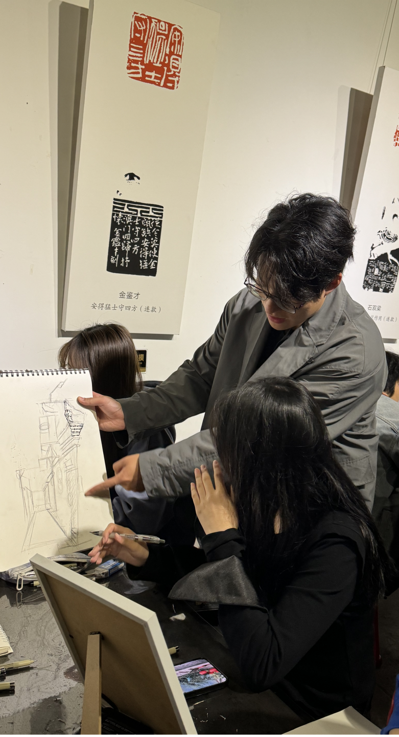 采风写生期间,同学们严格遵守写生安全规定,结合本专业的特点,做好绘画考察记录,认真完成作品。带队教师精心指导、全程跟进、亲身示范、逐一点评,通过“讲练评改”的方式,传授自身经验和技巧,帮助同学们进一步提升绘画技能,夯实专业基础。